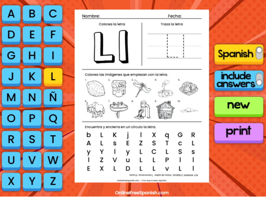 El aprendizaje del alfabeto es uno de los primeros pasos para dominar un nuevo idioma. En el caso del español, conocer las letras y sus sonidos es esencial para desarrollar habilidades de lectura, escritura y pronunciación. Hoy quiero compartir una herramienta gratuita creada por OnlineFreeSpanish que pueden usar en clase o en casa: colorea / traza / encuentra – OnlineFreeSpanish.com.