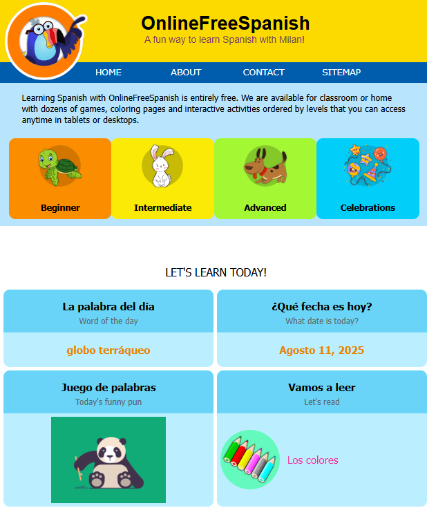 Our redesigned website is now more user-friendly, colorful, and fun, making it easier than ever to explore all the excellent tools we offer to help you learn and teach Spanish.